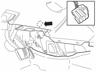 - Locate the 4 pin, grey connector for the power supply. It is secured on the thick cable harness under the dashboard on the driver's side.