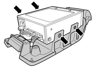 - Place the DVD unit in the lower section of the cover as illustrated. Ensure that the cable harness goes under the DVD unit and does not protrude towards the open button or screw tower.