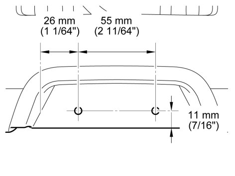 - Make marks for drill holes on the opening handle for the tunnel console as illustrated.