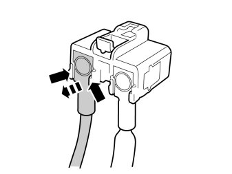 - Carefully pry up the two small catches at the rear edge of the receptacle housing and carefully pull out the cable terminal.