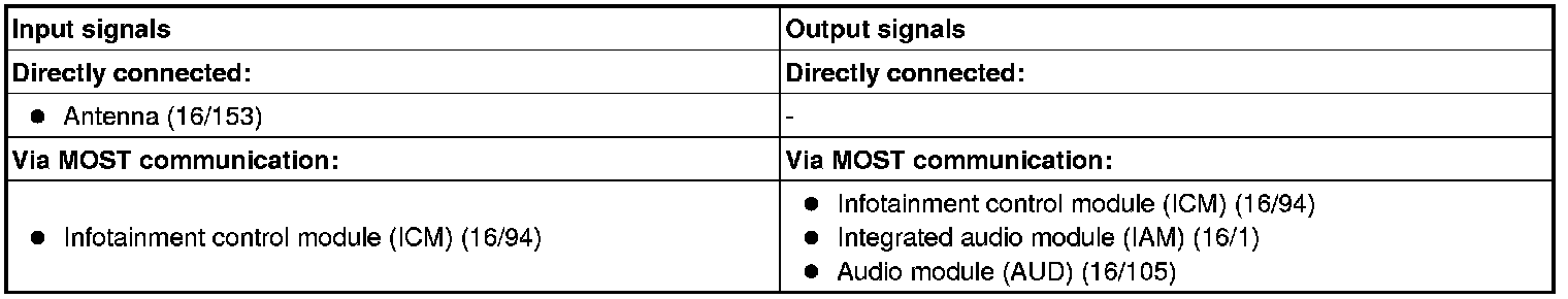 The control module has serial optical communication with other components in the MOST network. This means that all communication with Remote Digital Audio Receiver (RADAR) occurs via the Infotainment control module (ICM) or on the initiative of the Infotainment control module (ICM).