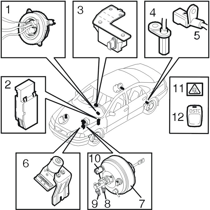 Note! In week 35 year 2001 a new brake control module is being introduced along with a new sensor in the brake electronics.