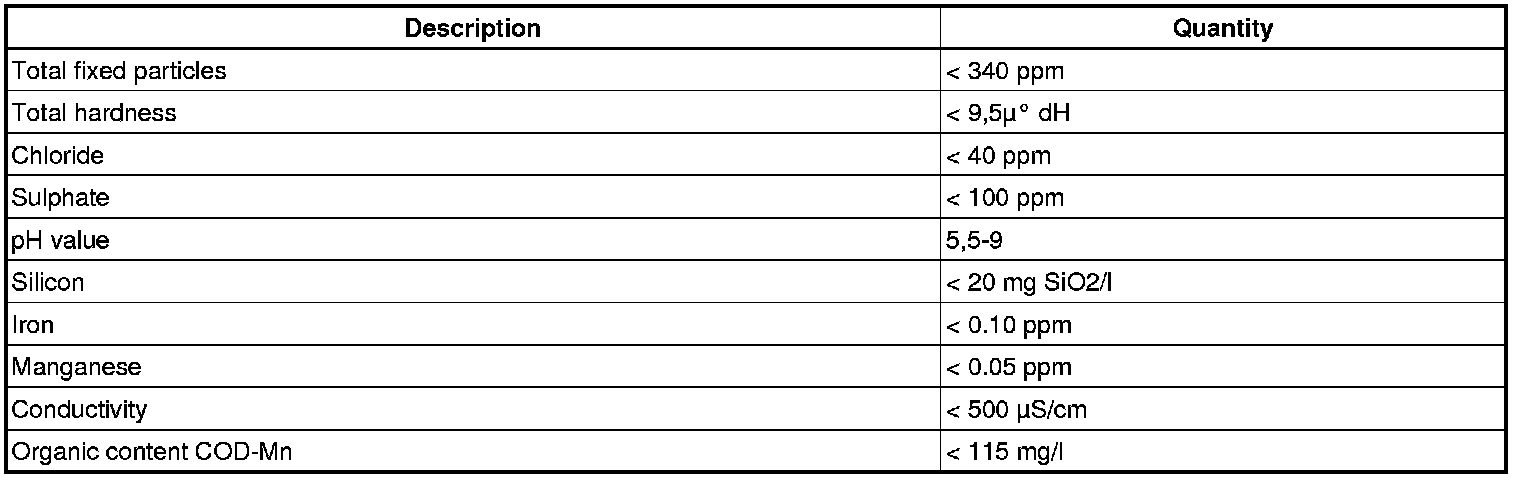 The water that may be used in Volvo engine cooling systems together with Volvo original coolant must meet certain requirements. Tap water, for example, contains too much chlorine, minerals and salts. Water that does not meet the requirements according to the specification can cause corrosion and deposits in the cooling system even if the water is mixed with coolant. See specification.