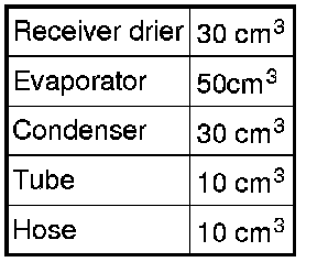 When replacing components, the following oil volumes shall be found in the new components or shall be filled in the system through the service valve, except for the compressor (see the section "Compressor" below):