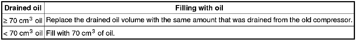 - Drain the new compressor of oil (the amount may be below specified value since it is not possible to drain all oil from the compressor).