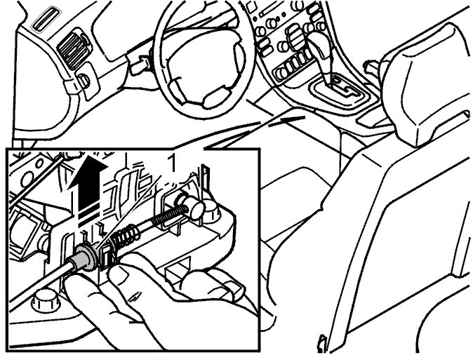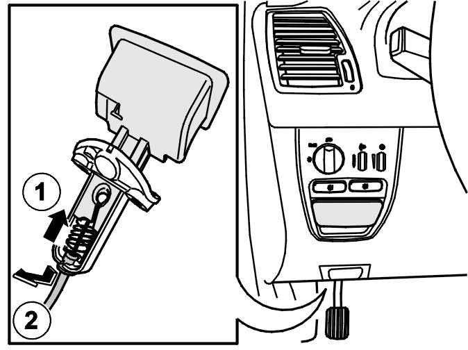 - the cable for the parking brake. Hook the cable into place at the release handle