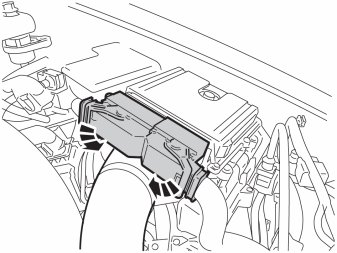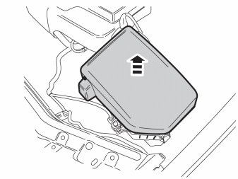 - Lift up the air filter, which sits with a clip on the left side. Position the air filter in the engine compartment so that the grounding point underneath is accessible.