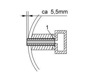 - Check that the surface (1), which the socket shall support against, is free from plastic.