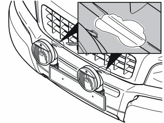 - Clean the painted surfaces in the front and lower edges of the bonnet opposite where the top struts are mounted in the bumper. Use a mixture of 30% washer fluid and 70% water.