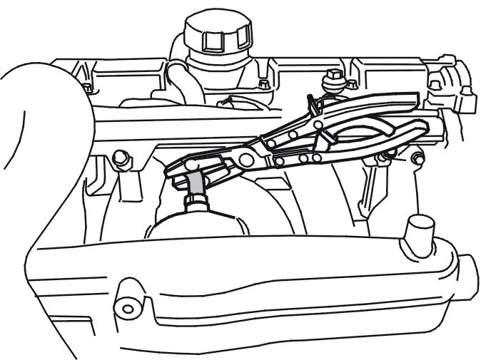 Clamp shut the hose closest to the connection to inlet manifold with locking pliers.