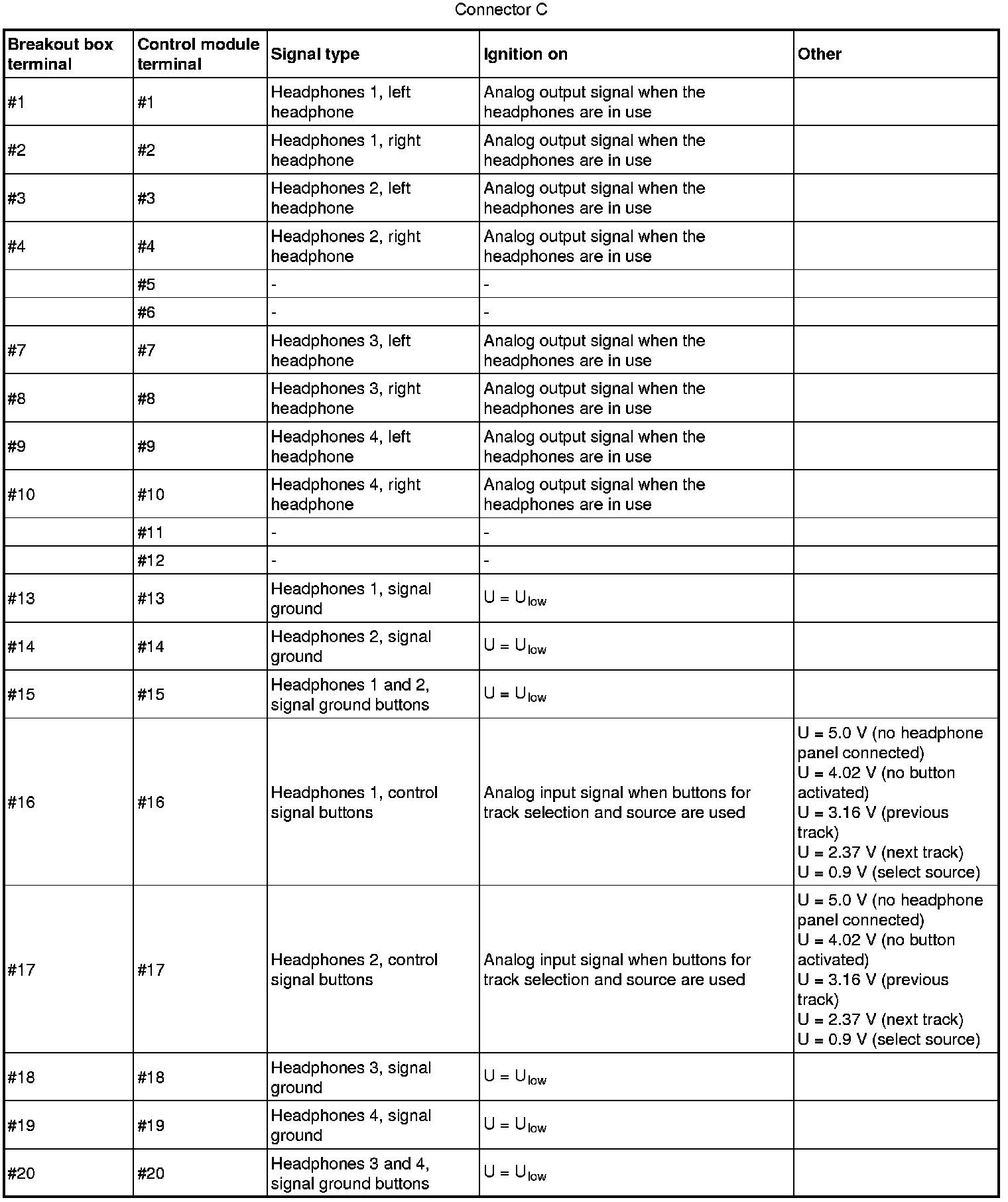 Pinout Values and Diagnostic Parameters