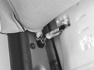 Pull down the backrest cushion upholstery so that the half moon clips can be installed.