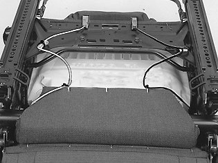 Remove the 2 screws holding the airbag to the inside of the backrest frame.