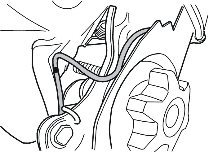Install the other tie strap approximately 40 mm below the black mark (2) on the ignition cable.