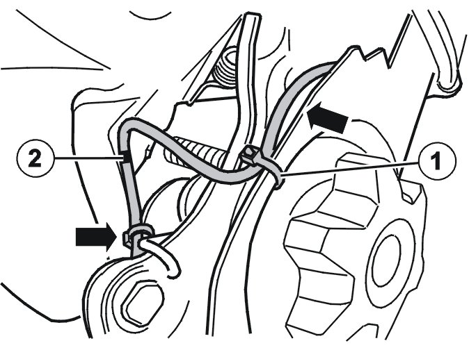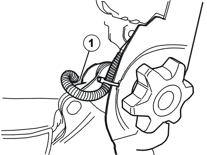 Ensure that there is sufficient slack in the cable harness between the ignition cable connector and the first tie strap (1).