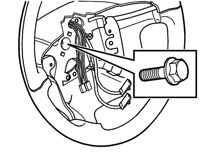 Remove the steering wheel screw. Ensure that the front wheels and steering wheel are in the straight ahead position. Remove the steering wheel.