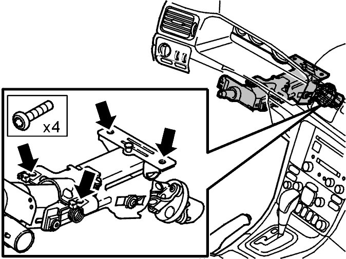 Remove the cable bracket with the cable harness from the steering column. Route the cable harness and bracket through the hole in the dashboard. Place on the floor.