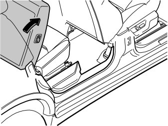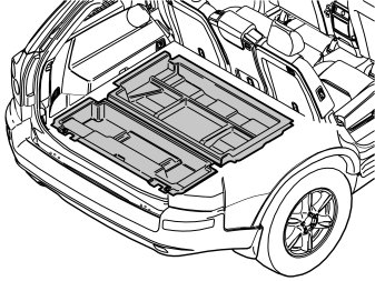 If the rear floor hatch is equipped with a carrier bag holder on the lower side, the floor hatch is secured by a strap with knobs on each of the shorter sides of the storage box.