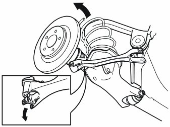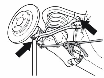 - Secure a tensioning strap between the mounting for the jack and the outer hole on the bottom of the lower control arm to relieve the load on the screw in the front mounting for the lateral link.