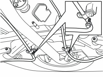 - Detach the mountings for the parking brake cables from the sub-frame.