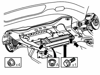 Install the sub-frame's four screws together with the sub-frame's brackets and engine heater, if installed.