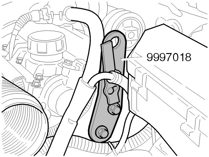 Install lifting eye 999 7018 Lifting lug 999 7018 Lifting Lug on the left side of the engine at the 2 screws.