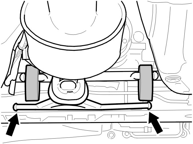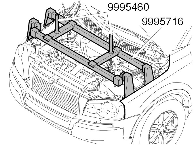 Position a mobile jack with universal plate 999 5972 FIXTURE 999 5972 Fixture at the rear of the sub-frame.