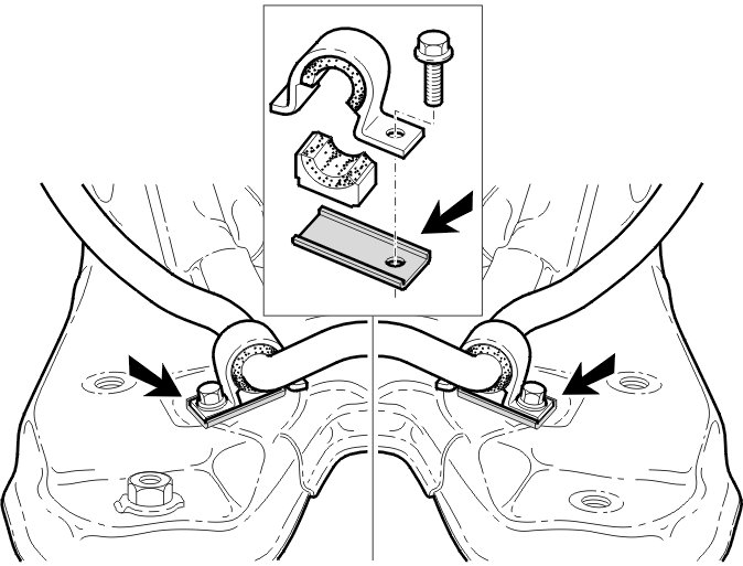 Note! The anti-roll bar's bushings and caps are vulcanized to the anti-roll bar and cannot be replaced separately.