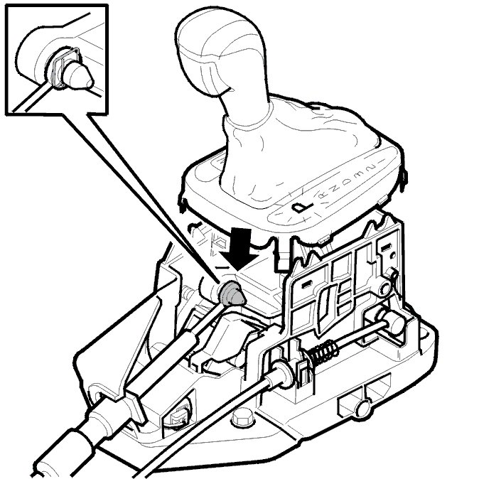 Install the solenoid in the gear selector assembly cut-out. The blade terminal and the cable should be upwards in the gear selector assembly.