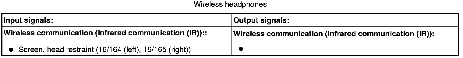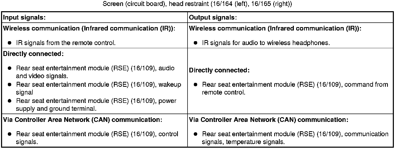 The tables below include the in and output signals for the units in the system for rear seat entertainment.