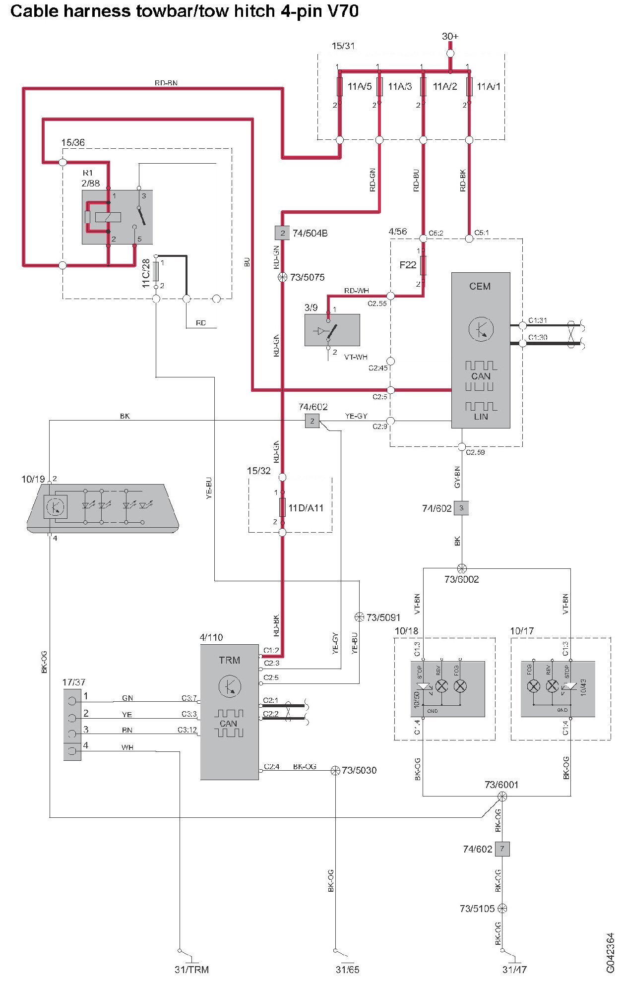 Cable Harness Towbar/tow Hitch 4-pin V70