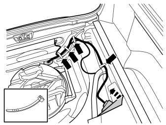 - Route the cable from the rubber lead-in and along the existing cable harnesses up to the trailer module (TRM) at the front edge of the left-hand side of the cargo compartment.