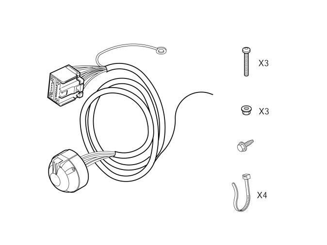 Cable harness kit for towbar, 7-pin
