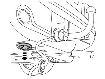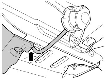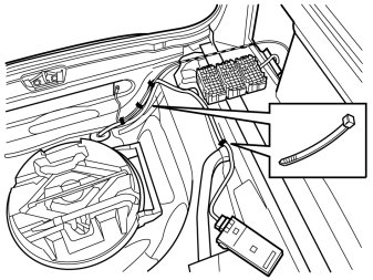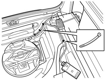 - Insert the cable with the connector into the hole in the spare wheel well and install the rubber grommet.