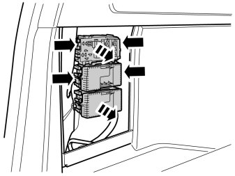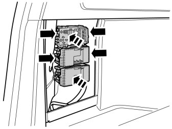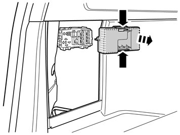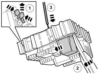 - Squeeze the tabs together on the fuse holder catch on the module where the cable is to be pressed in, and pull up.