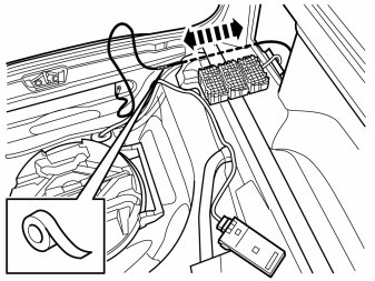 - Secure the cable to the control module, the ground lead excess and the cable to the fuse holder, at the thick cable harness and cable duct. Use cable ties from the kit.