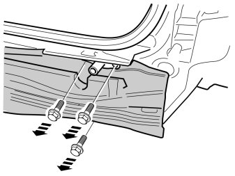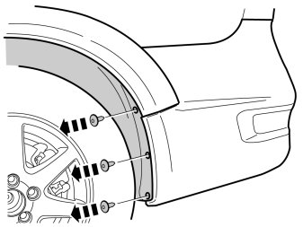 - Place the fender liner to one side. Remove the screw at the upper edge of the cover on both sides.