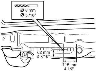 - Pre-drill using a small drill bit. Drill out the hole to -8 mm (5/16").
