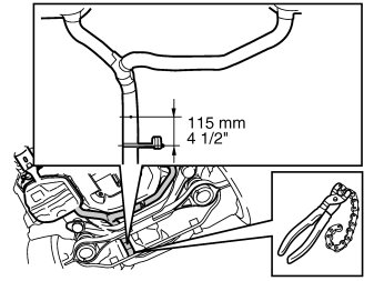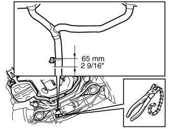 - Cut off the exhaust pipe with the pipe cutter according to the diagram. The cutting location is marked by a small indentation on the underneath of the pipe.