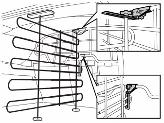 - Open the lower clamp and affix it as illustrated. Tighten the clamps only exactly as much as necessary to grip the grille, do not tighten them yet.
