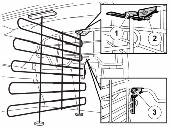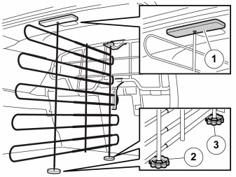 - Screw the support panel (1) so that it is against the roof panel, and is parallel with it.