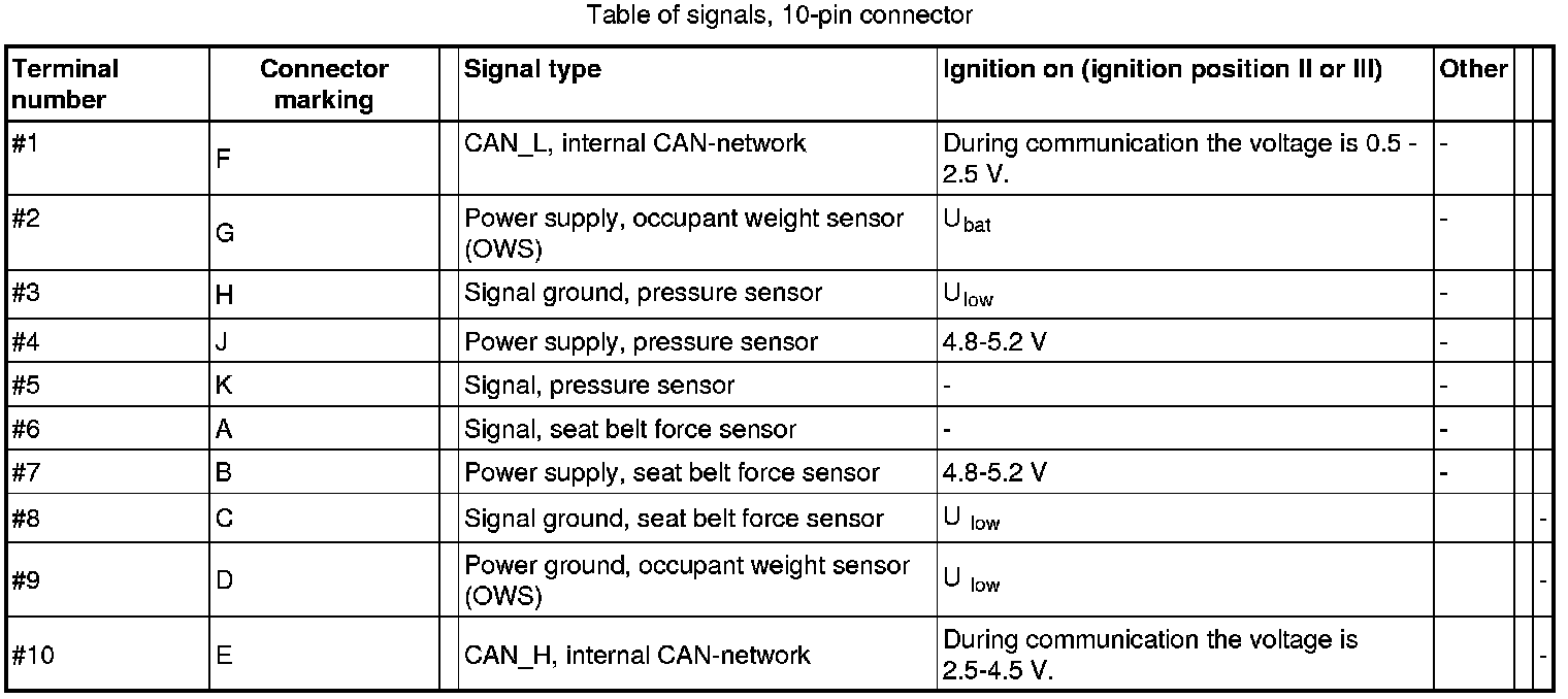 All values specified below are between the relevant terminal and terminal #9 (power ground).