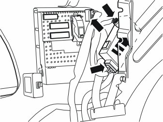 - Secure the cable harness to the cable harness behind the battery with tie straps (3) from the kit.
