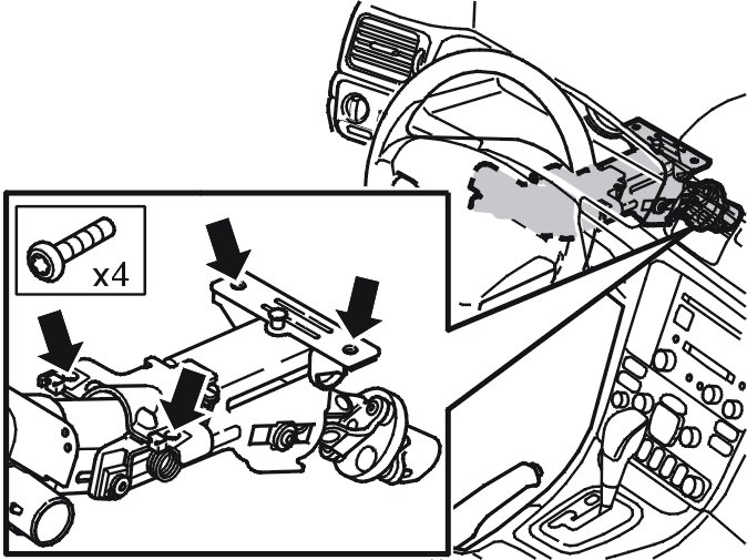 - the screw from the steering column (x4). Tighten to 25 Nm