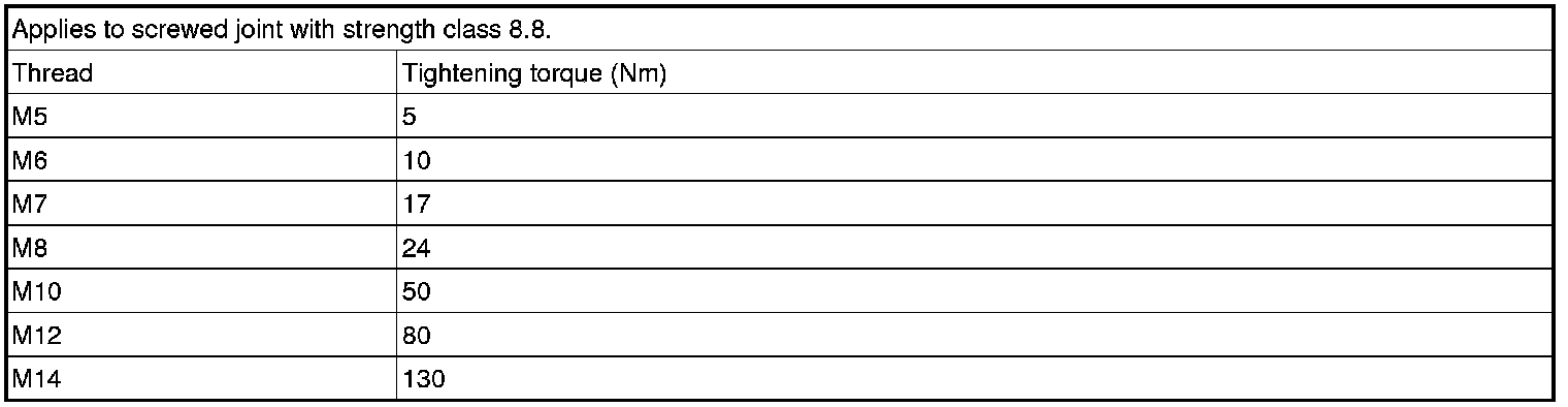 Note! Screws coated with a locking fluid or self locking nuts must be replaced with new when reinstalled.